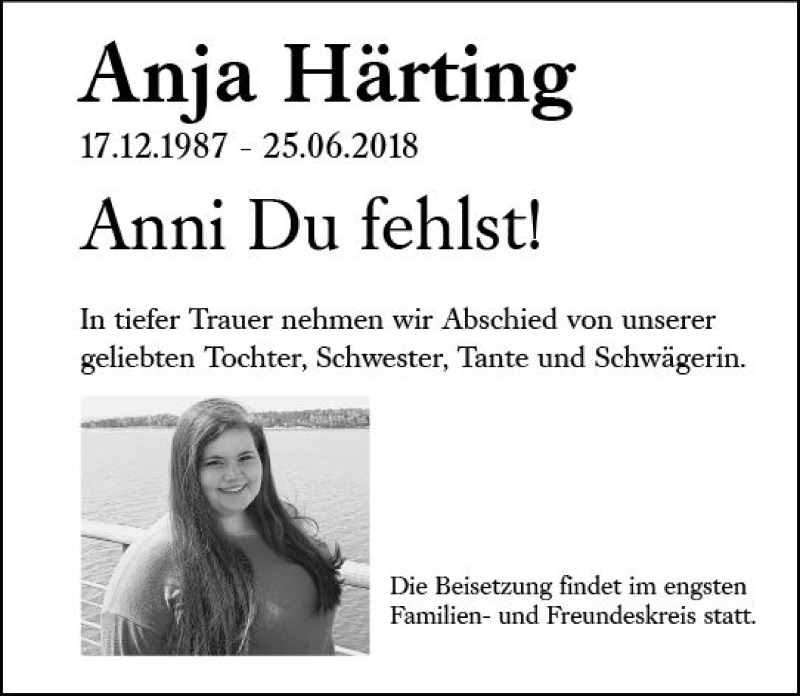 Hier finden Sie alle Traueranzeigen aus der Zeitung, die bisher für Anja Härting erschienen sind. Weitere Traueranzeigen, die in der Zeitung erscheinen, werden hier ebenfalls aufgelistet