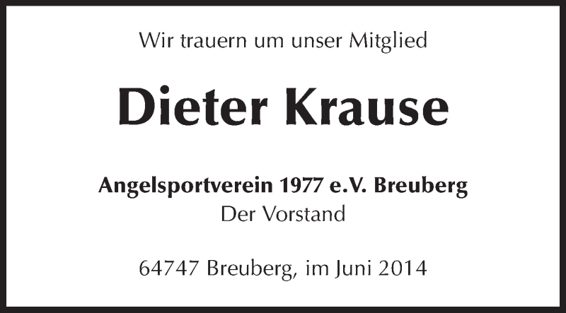 Hier finden Sie alle Traueranzeigen aus der Zeitung, die bisher für Dieter Krause erschienen sind. Weitere Traueranzeigen, die in der Zeitung erscheinen, werden hier ebenfalls aufgelistet