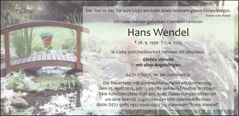 Hier finden Sie alle Traueranzeigen aus der Zeitung, die bisher für Hans Wendel erschienen sind. Weitere Traueranzeigen, die in der Zeitung erscheinen, werden hier ebenfalls aufgelistet