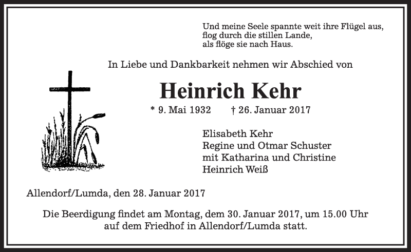 Hier finden Sie alle Traueranzeigen aus der Zeitung, die bisher für Heinrich Kehr erschienen sind. Weitere Traueranzeigen, die in der Zeitung erscheinen, werden hier ebenfalls aufgelistet