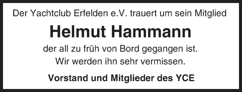 Hier finden Sie alle Traueranzeigen aus der Zeitung, die bisher für Helmut Hammann erschienen sind. Weitere Traueranzeigen, die in der Zeitung erscheinen, werden hier ebenfalls aufgelistet