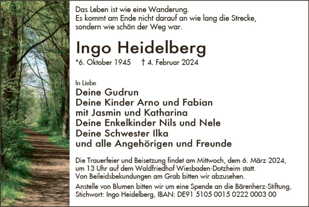 Hier finden Sie alle Traueranzeigen aus der Zeitung, die bisher für Ingo Heidelberg erschienen sind. Weitere Traueranzeigen, die in der Zeitung erscheinen, werden hier ebenfalls aufgelistet