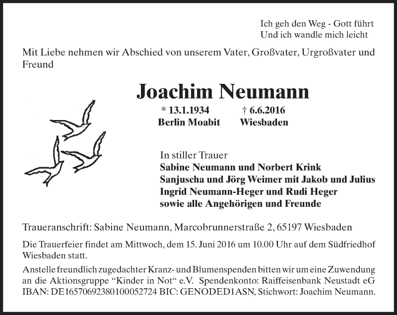 Hier finden Sie alle Traueranzeigen aus der Zeitung, die bisher für Joachim Neumann erschienen sind. Weitere Traueranzeigen, die in der Zeitung erscheinen, werden hier ebenfalls aufgelistet