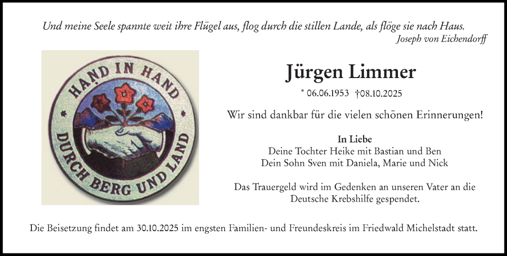Hier finden Sie alle Traueranzeigen aus der Zeitung, die bisher für Jürgen Limmer erschienen sind. Weitere Traueranzeigen, die in der Zeitung erscheinen, werden hier ebenfalls aufgelistet