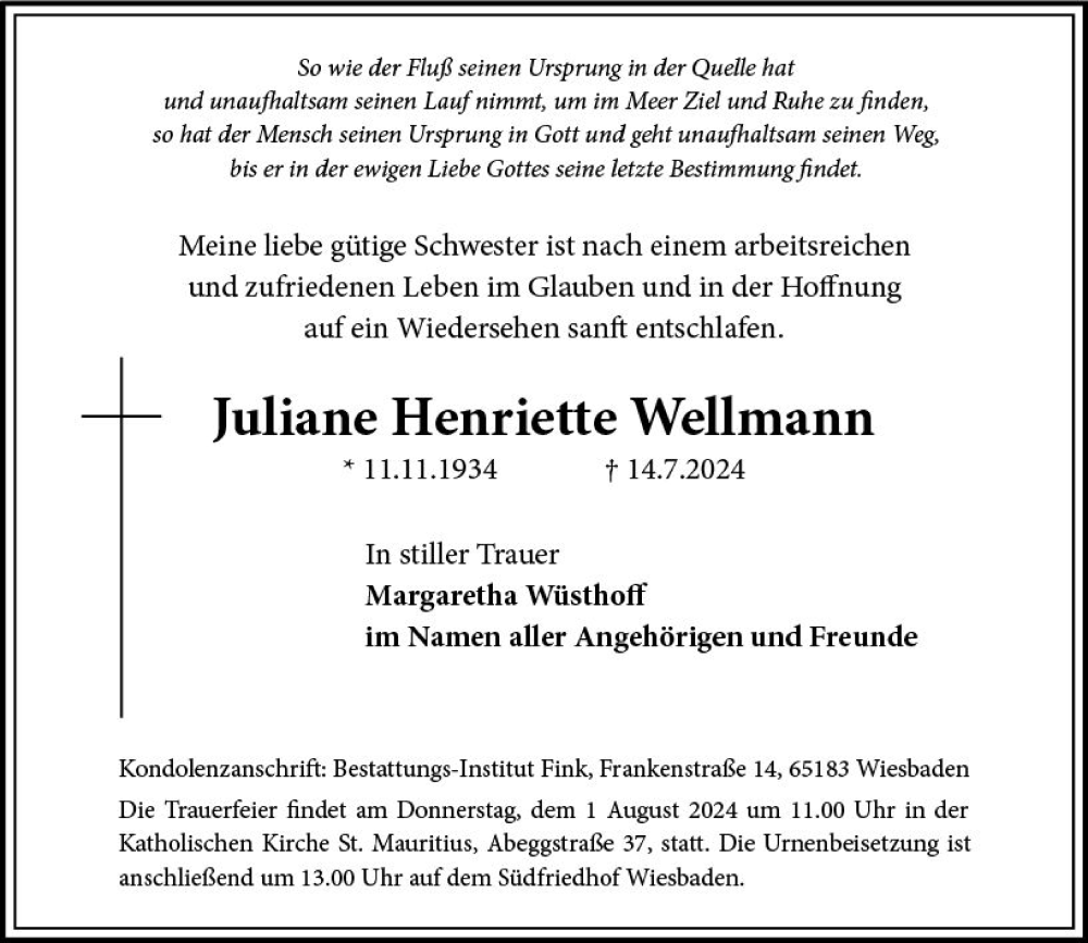 Hier finden Sie alle Traueranzeigen aus der Zeitung, die bisher für Juliane Wellmann erschienen sind. Weitere Traueranzeigen, die in der Zeitung erscheinen, werden hier ebenfalls aufgelistet