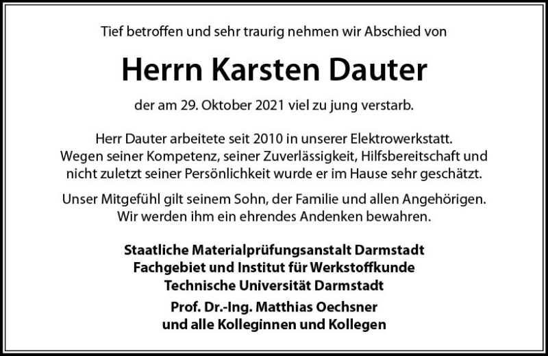 Hier finden Sie alle Traueranzeigen aus der Zeitung, die bisher für Karsten Dauter erschienen sind. Weitere Traueranzeigen, die in der Zeitung erscheinen, werden hier ebenfalls aufgelistet