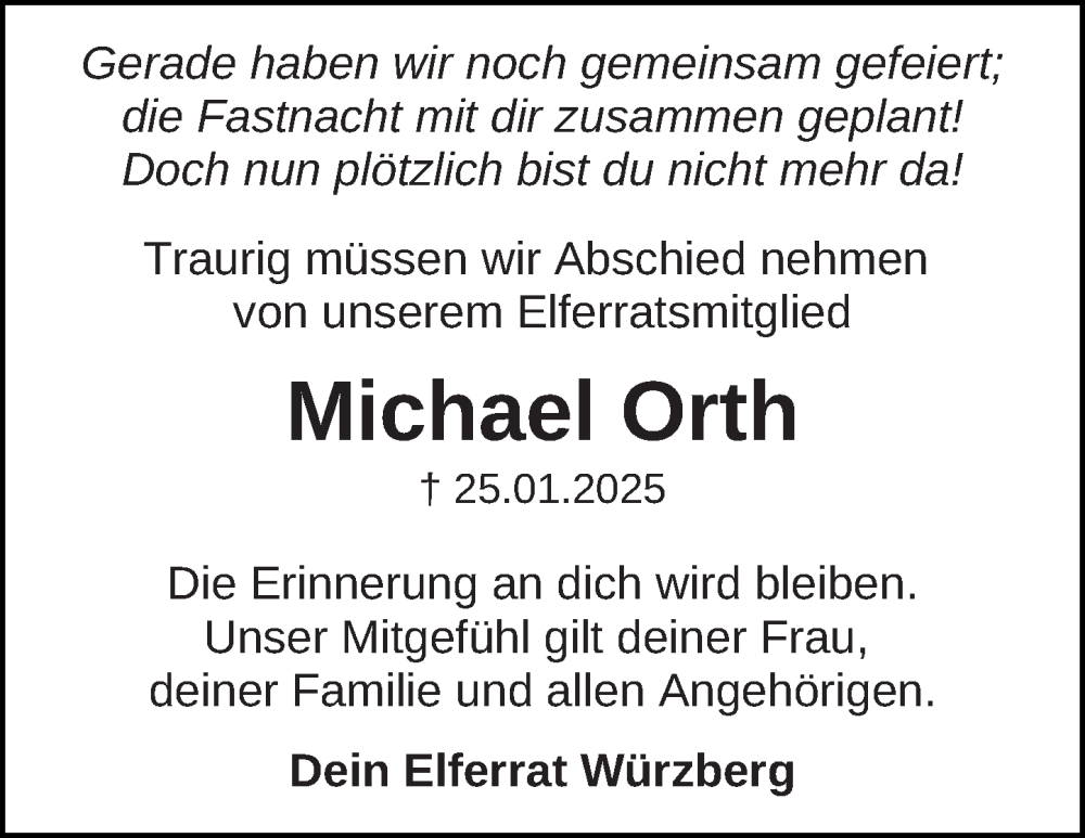 Hier finden Sie alle Traueranzeigen aus der Zeitung, die bisher für Michael Orth erschienen sind. Weitere Traueranzeigen, die in der Zeitung erscheinen, werden hier ebenfalls aufgelistet