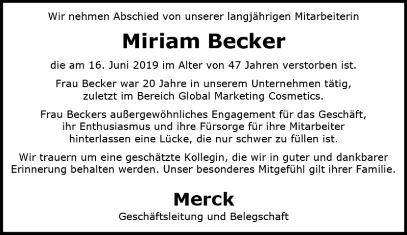 Hier finden Sie alle Traueranzeigen aus der Zeitung, die bisher für Miriam Becker erschienen sind. Weitere Traueranzeigen, die in der Zeitung erscheinen, werden hier ebenfalls aufgelistet