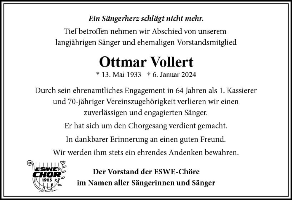 Hier finden Sie alle Traueranzeigen aus der Zeitung, die bisher für Ottmar Vollert erschienen sind. Weitere Traueranzeigen, die in der Zeitung erscheinen, werden hier ebenfalls aufgelistet