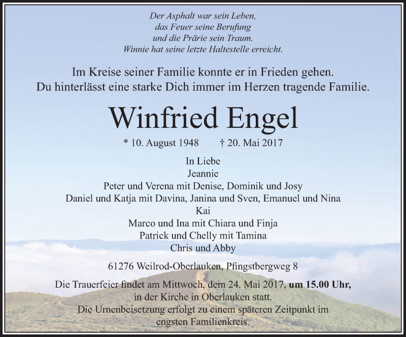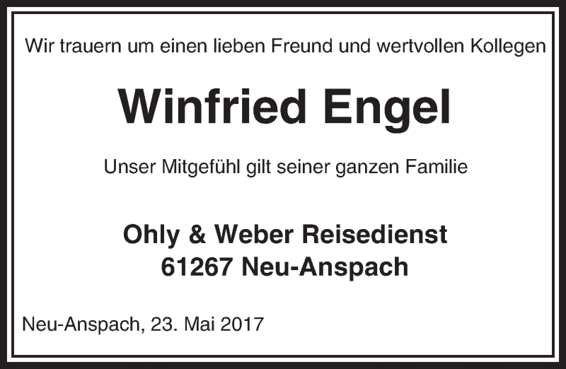 Hier finden Sie alle Traueranzeigen aus der Zeitung, die bisher für Winfried Engel erschienen sind. Weitere Traueranzeigen, die in der Zeitung erscheinen, werden hier ebenfalls aufgelistet